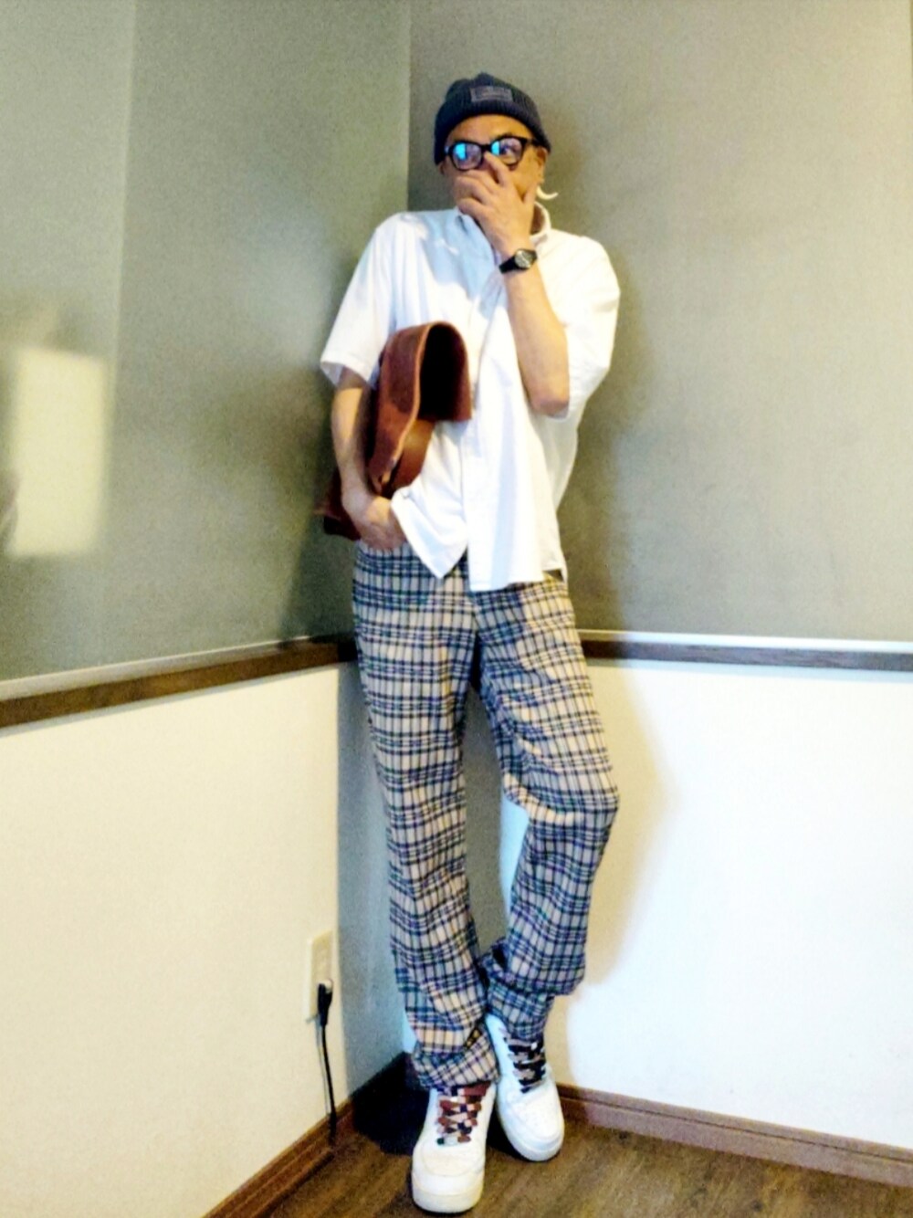 大人の夏カジュアル。 少しCITYなイメージ。 ボロボロのエアフォースワンに着けているAPEのシューレースのせいなのか何故か頭の中で流れる『今夜はバギーパンツ』…何で本家じゃないんだろ バギーパンツ穿いてないのに(笑)
