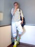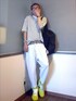 スポーツMIXな大人カジュアル。 敢えてフラッシュカラーの非モテスニーカー(笑) kolorの切りっぱなしサルエルスウェットパンツは腰の切り替えソケットの中のスカーフ等ギミックが良い感じ絶妙なライトグレーが爽やかな印象。
