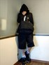 秋のジャケットスタイル。 フードで首元温か。
