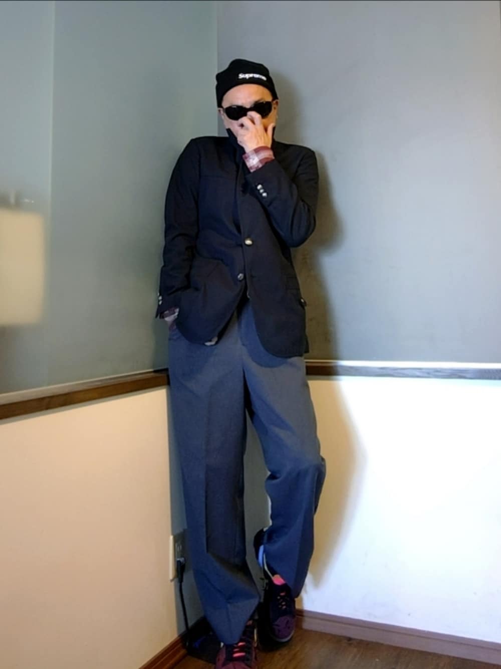 大人ストリートカジュアル。 古着のテーラードジャケットは気負わず羽織れるのが◎ ビーニー×サングラスは昨夜見たBeastieBoysのせい(笑)スーツも着たくなるwww