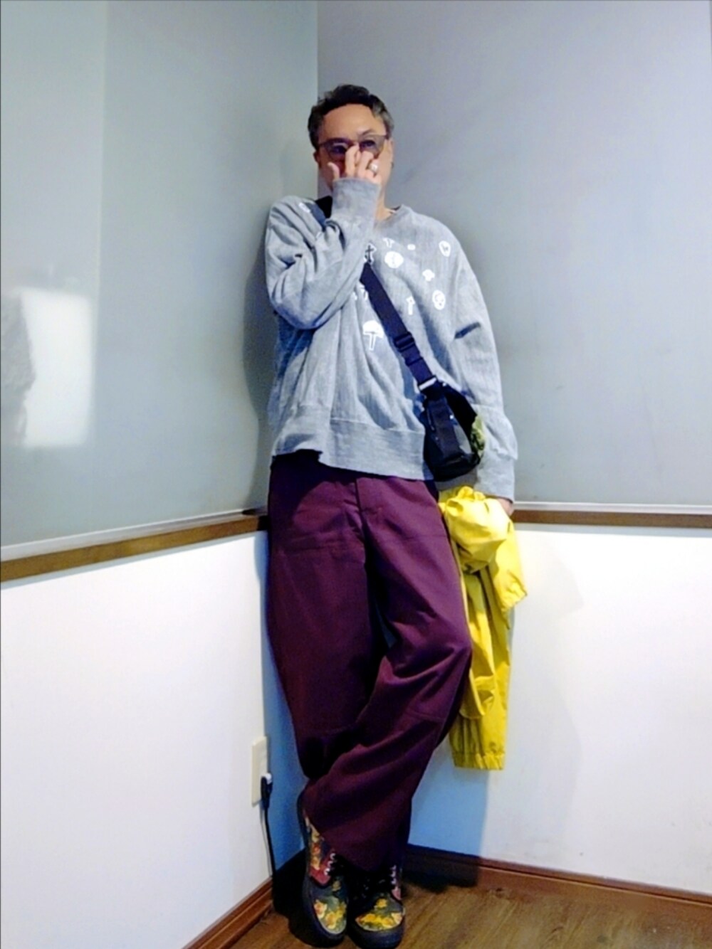 冷たい雨が降った夜のスタイル。 ちょっとアップリケがハロウィンなスウェット。