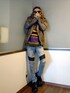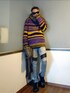 大人のHalloweenコーデ。 Halloweenカラーかつクレイジーボーダーのニットで 全締めフードオンはほぼフクロウ男www