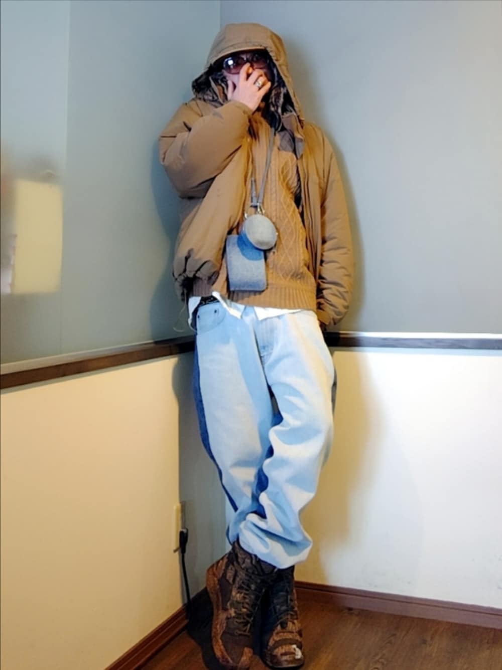 冬のデニムスタイル。 デニムシャツとモックネックニットで暖かいレイヤードスタイル。(タグしてなくてごめんなさいw) シルバータブはガッツリ腰でちょっと気分上げ。