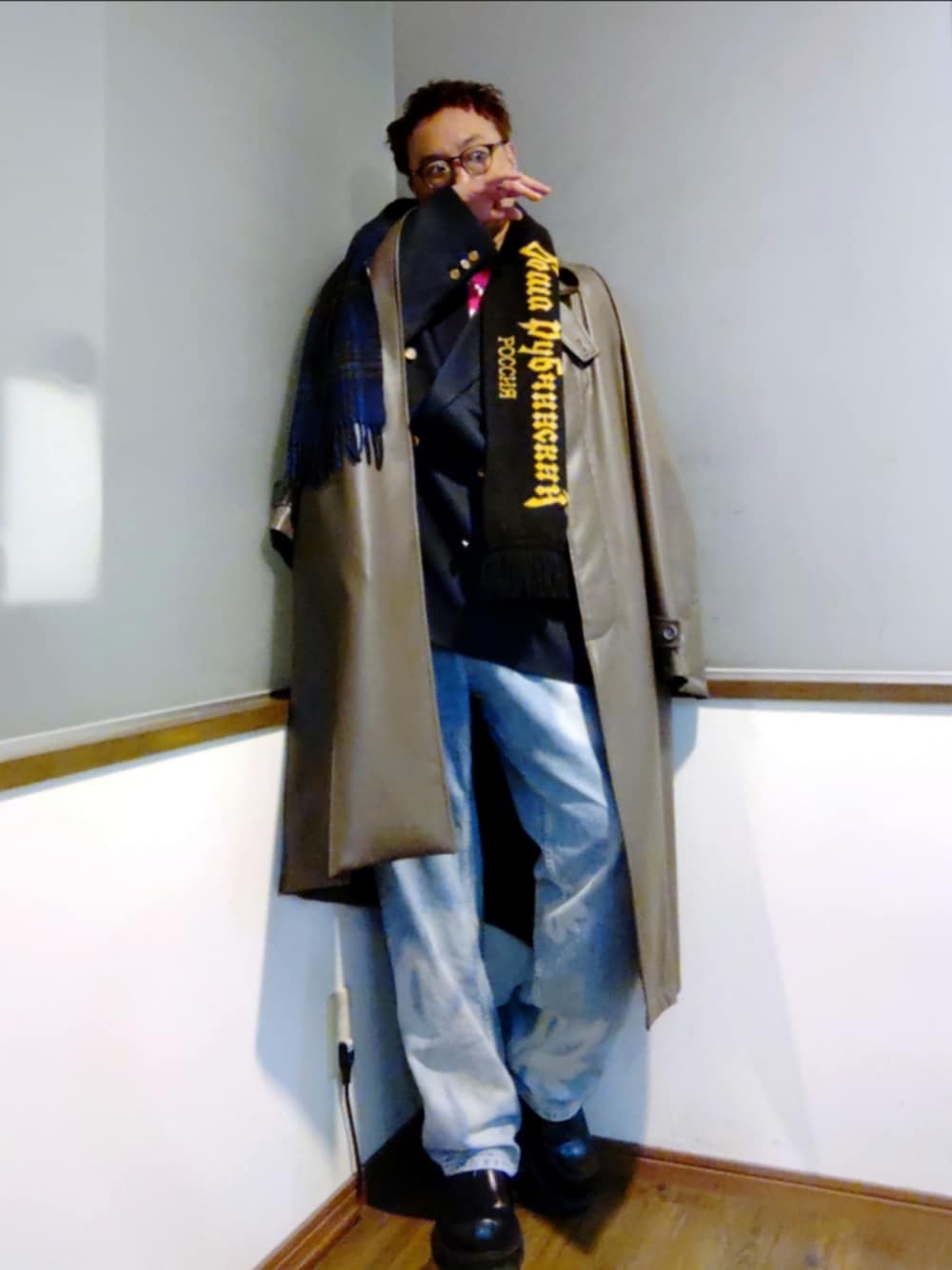 P3のステンカラーコート「《ユニセックスアイテム》リサイクルライトフェイクレザープライムオーバーステンカラーコート【MAISON SPECIAL/メゾンスペシャル】■セットアップ対応■」を使ったコーディネート