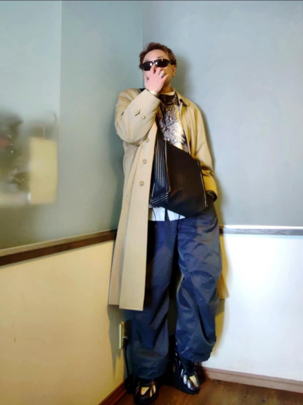 3月だと何となくダウンジャケットは着づらい…けど寒い…そんな朝 白シャツ✕スウェット✕ナイロンジャケット✕トレンチコートで野暮ったくならないレイヤードスタイル。 足元ビチャビチャなのでスニーカーとナイロンパンツで。 プチプラのナイロンカーゴパンツは結構優秀な気がします。