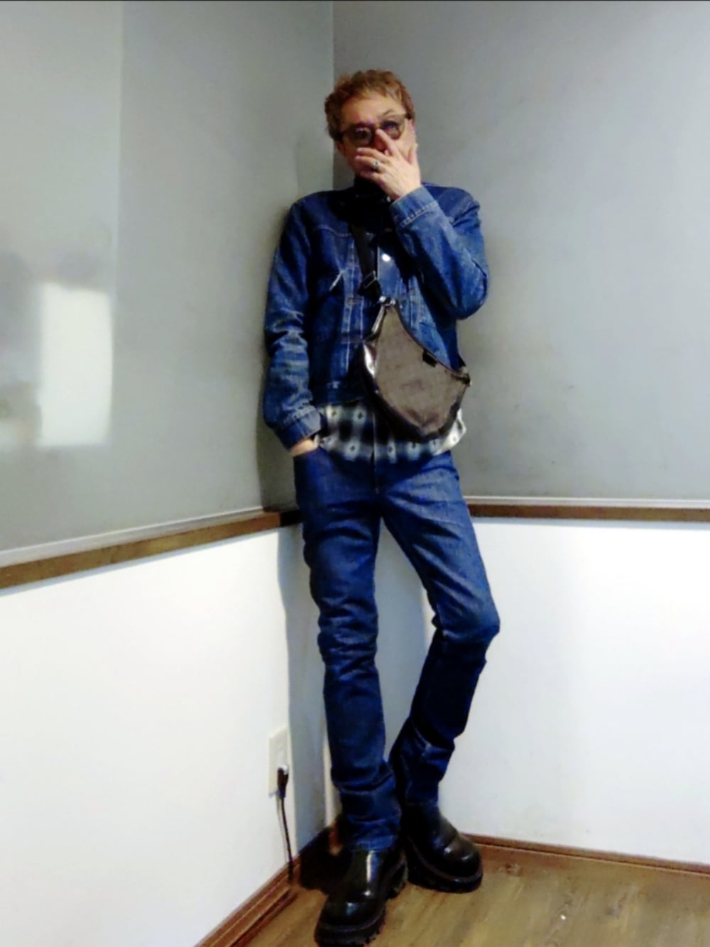 結局まだ寒かった日の大人カジュアル。 APCのセットアップ✕agnès b.のレザーコートのシンプルな大人カジュアル。 シンプルにデニムオンデニムはコレくらいがカッコイイのかもしれない。けど…あがきたいのよね(笑)