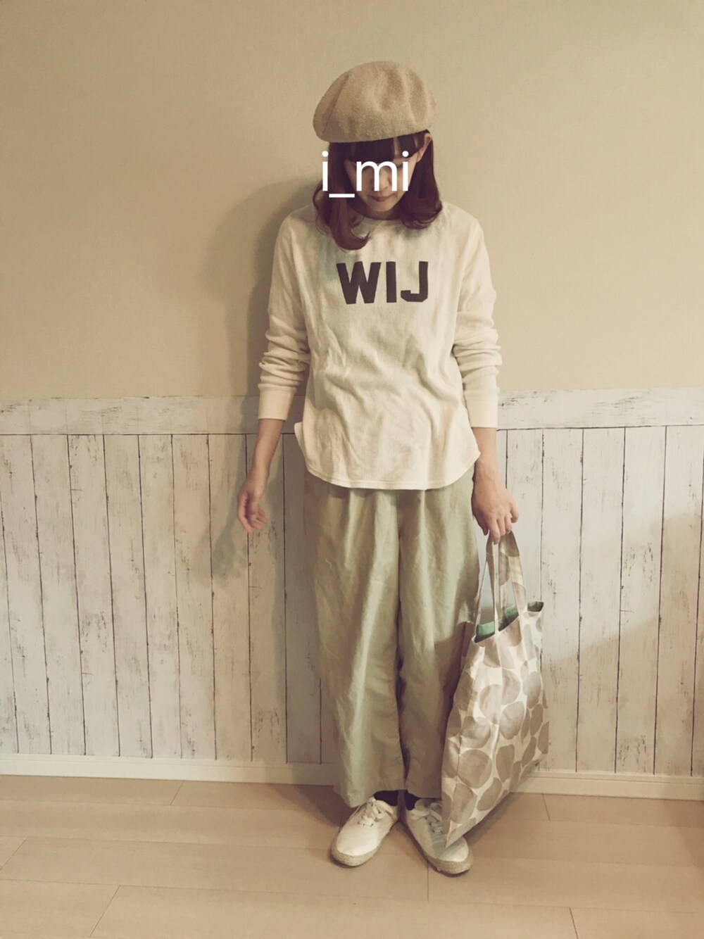 ベージュとホワイトコーデ☺︎ 図書館へ行ってきます🏃