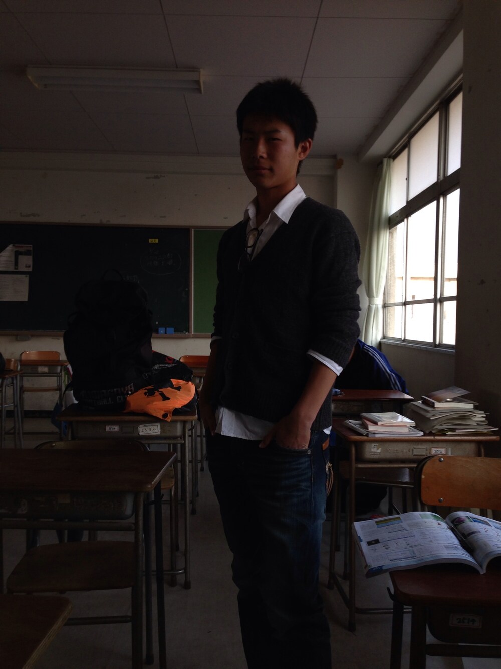 カーディガンが決めて。メガネは非売品