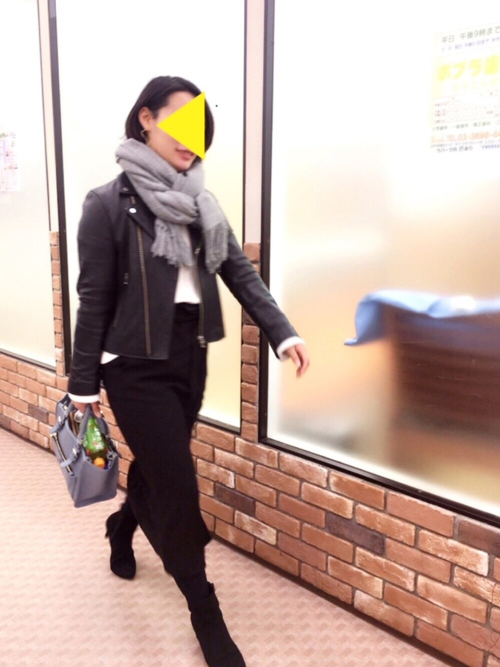 寒いから着込みすぎて ライダースがモコモコになりました。笑 バックで差し色を TIENSecouteは少し値段は張りますが サイズが大きめで細く見せてくれるアイテムが多いのでお気に入りです