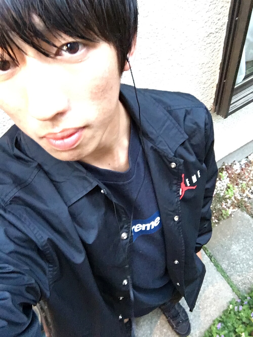 supreme×NYの箱ロゴにsupreme×JORDANの黒のコーチジャケットを羽織ってみました!👌 靴はNike のモアテンボルト!sup・が届くまでお世話になりそうです🙏