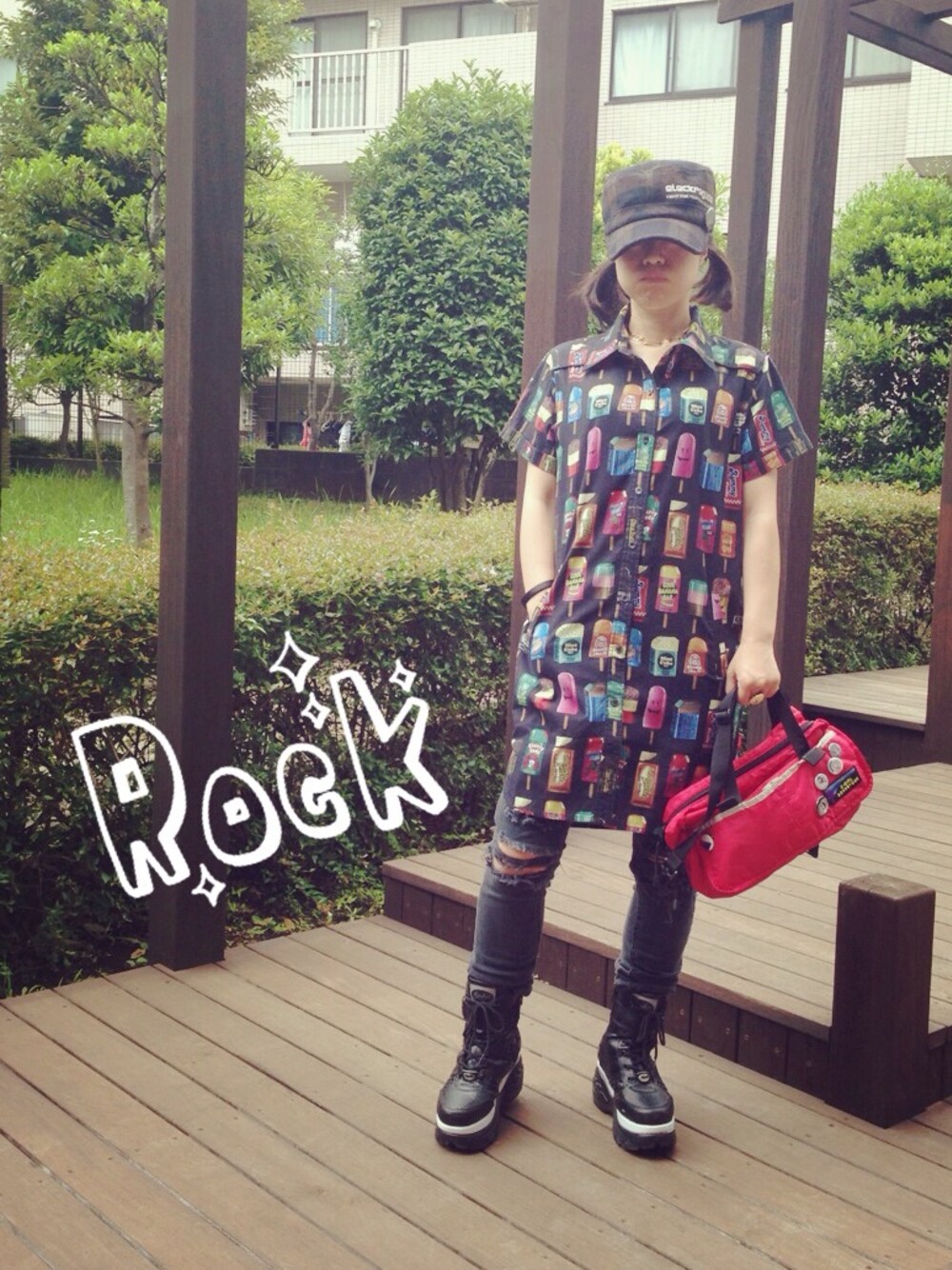 ブランドタグが大好きなAymmyなのでとっておきのワンピー!ロケーションが絶望的に服と合ってなくて悲しいんですが、このアイス柄シリーズほんとうに可愛くてお気に入りです。 ボタンは上までとめるのが可愛いんだけど、多分今日はこれを着ている人がたくさんいるので独自色を出したく、ぼろぼろのダメージジーンズとGoocyのチョーカー&ゴールドパンサーリングでヘタレギャングっぽくしてみました。見えてませんけども! 帽子はウールなので暑いんだけど他に合うのがなかった… yosukeの厚底スニーカーはデザイン的にやぼったいとこもあるんですが履いてて本当に楽なのでやめられません。疲れないのでライブ御用達。 今年はサマソニにこんなかんじの格好で行くつもりなので見かけたら声をかけて下さい^_^ 暑そう…?いえ、専ら屋内ステージ滞在組なので大丈夫です(笑) さっきAymmyデザイナーの瀬戸ちゃんとトップで並んでいたので記念にスクショりました。モチベとしてアイテム欄にいれときます( *`ω´) ######## ぼーっとしてたらなんとsyrup16g再始動の朗報が!! 今日はいい日だぁーーー!!