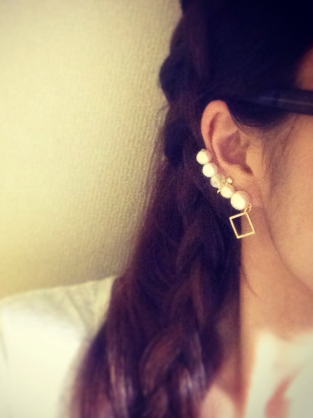 三つ編みスタイル×Ear cuf×これにロングカーディガンきていきます*+ insta TOMOP1847 follow me♡