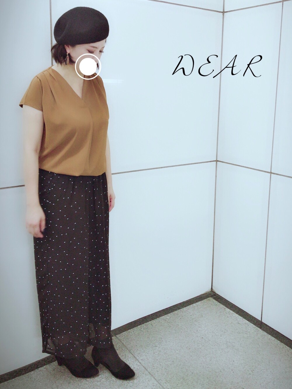 閲覧ありがとうございます😊 いいね👍SAVEありがとうございます😌 また暑さが戻ってきて、真夏に逆戻りです😭 街はすっかり秋モードなのに💦 頑張って、秋色だけ着てます💧 🌸今日のコーデ🌸 こちらのネックレス付ブラウスは、 すごくサラッとしてるブラウスですが、色が秋らしいので、まだまだ着れます🎶 今日はパンツに合わせました😊 🍀ブラウス ¥1990+tax 🍀パンツ ¥1990+tax