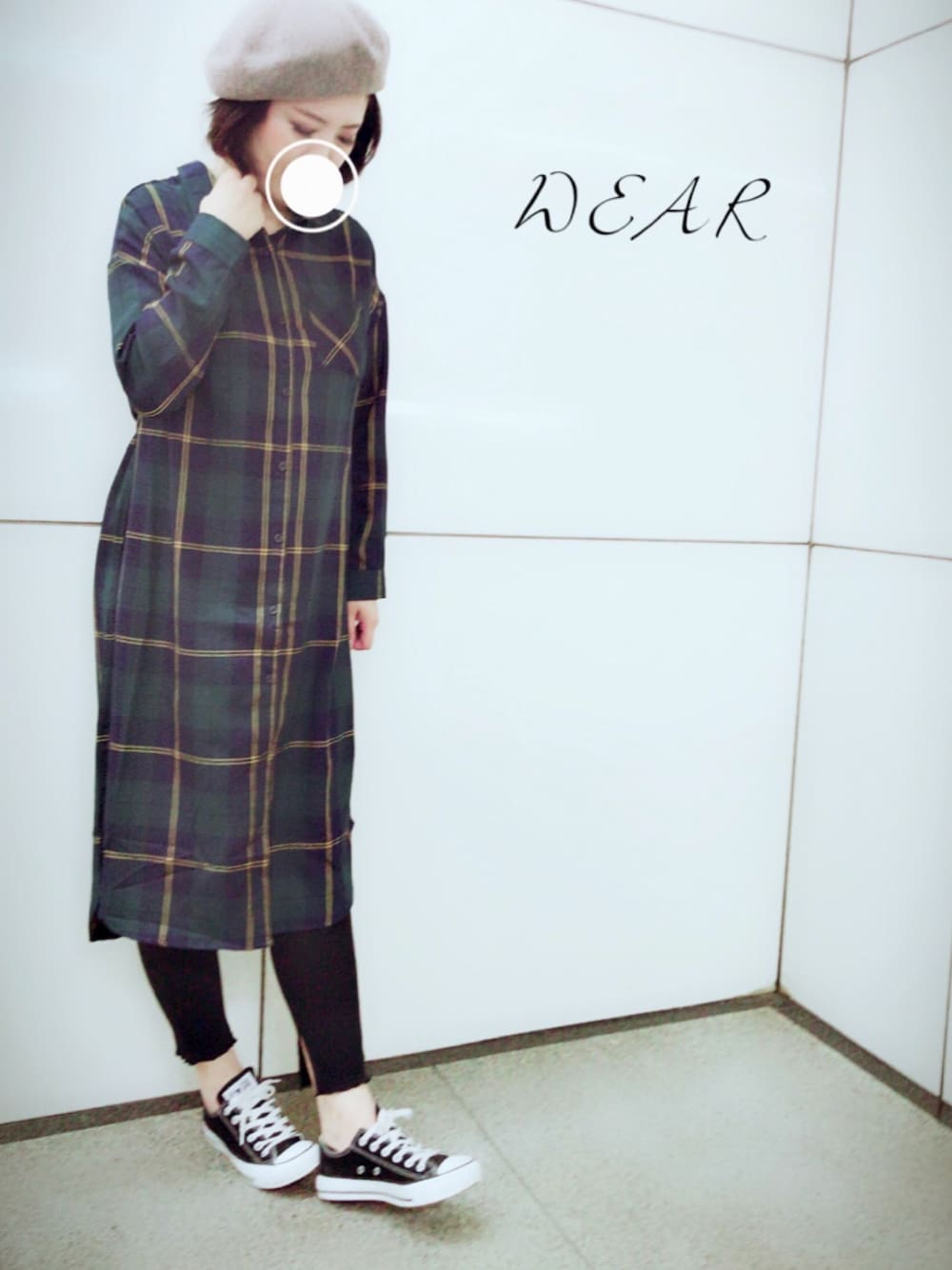 *megu*のシャツワンピース「チェックロングシャツワンピース」を使ったコーディネート
