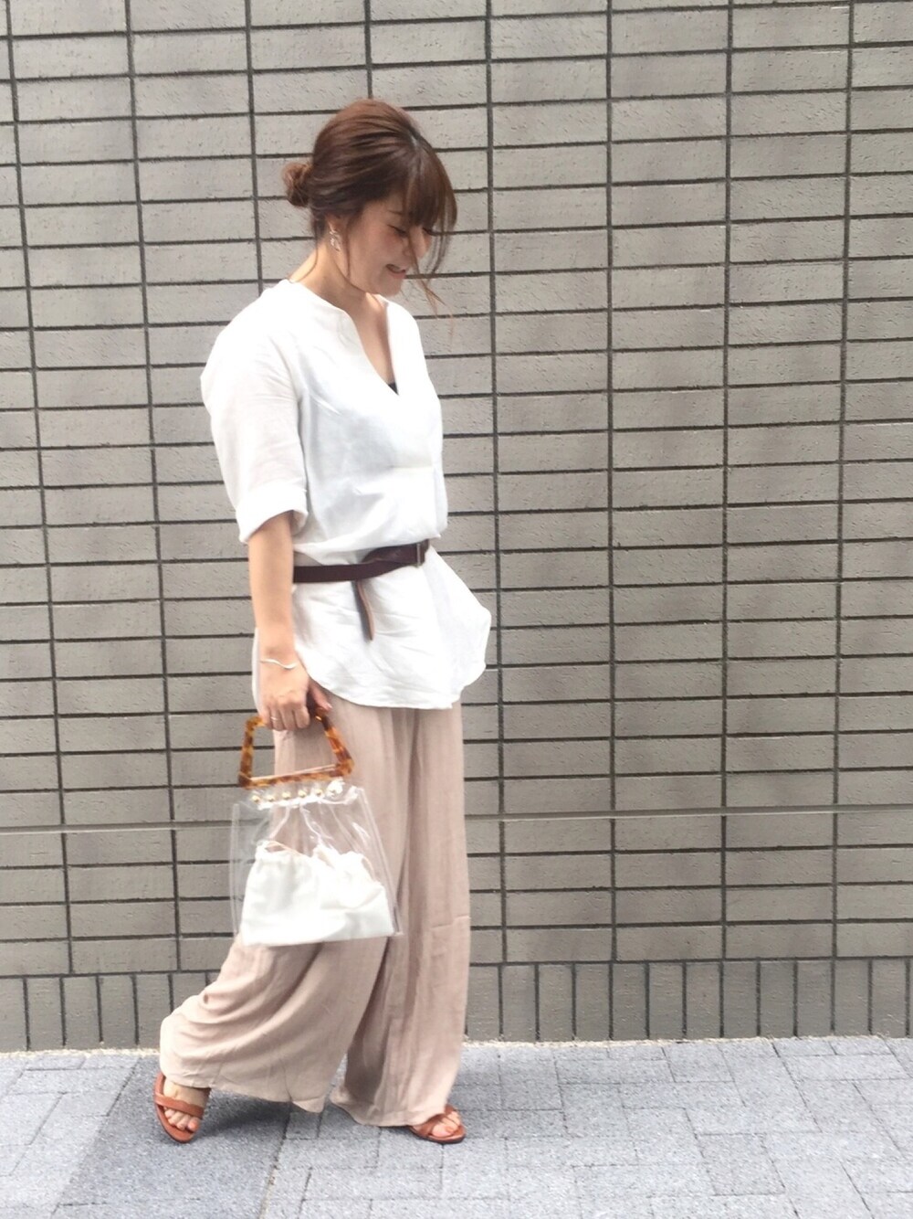 . . ゆるっと。 このパンツ、涼しくて最高。 . ________________________________ . tops…私物 bottom…Re:EDIT shoes…Re:EDIT belt…私物 bag…Re:EDIT . ________________________________ #reedit #reedit_ootd #リエディ #楊柳パンツ #クリアバッグ #pvc #サンダル #mao服
