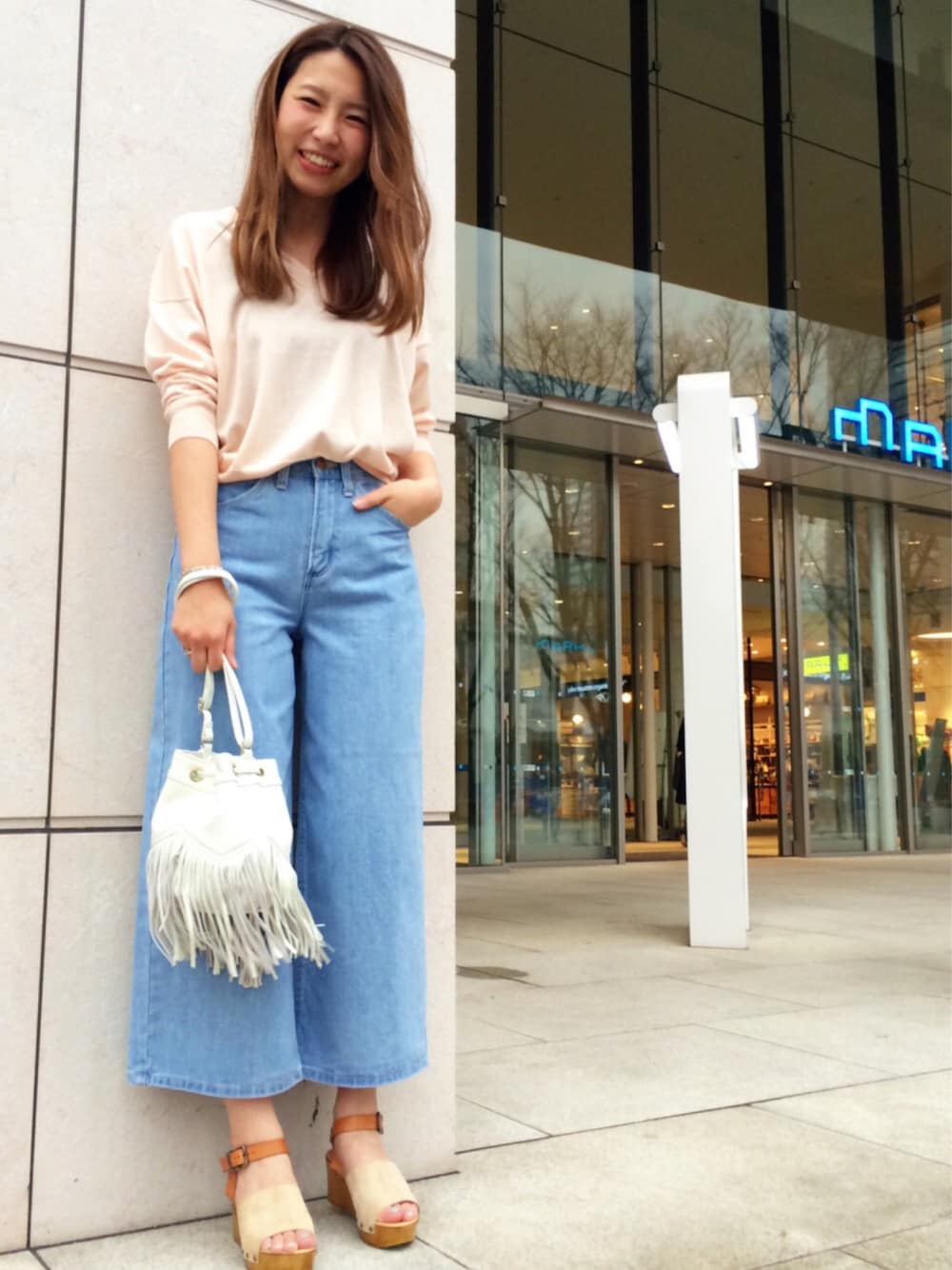 ADAM ET ROPE' ×Wrangler このデニムとっても履きやすいです。 クロップド丈も新鮮で、 サンダルを合わせるのが可愛い!
