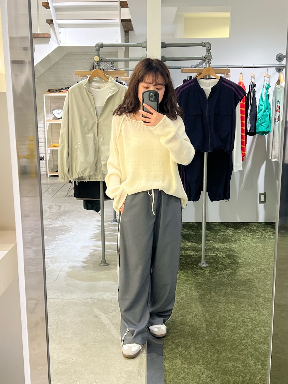 トップスのラグランサマーニットは程よい透け感と柔らかい素材で使いやすいです◎ パンツはサラッとした生地感と細めのラインが大人カジュアルで可愛い✨️