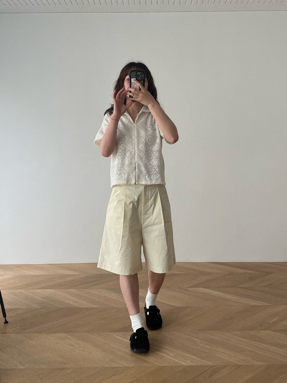 白のワントーンでさわやかに夏っぽさを出してみました☀️ レース素材のトップスは通気性がよく夏でも涼しく着れること間違いないです!