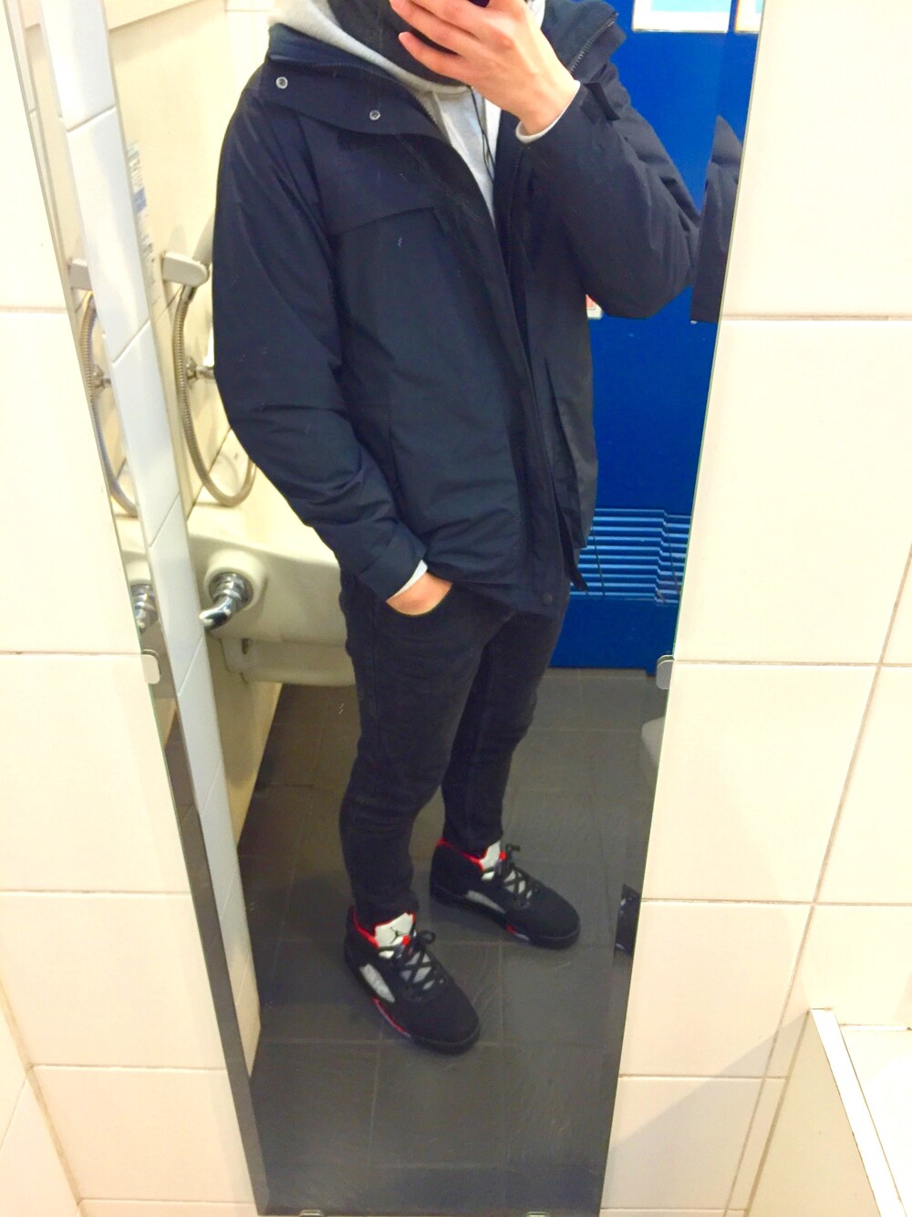 やっと念願のsupreme AirJordan5をgetしました かっこいい! 2wayのノースフェイスのジャケットも暖かいー