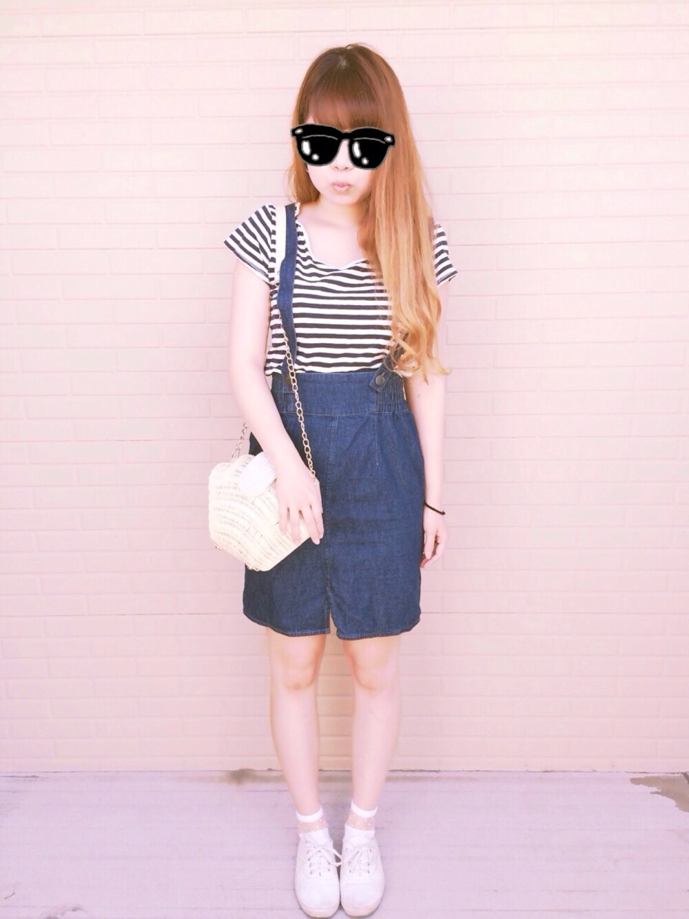 ホワイト系のTシャツ/カットソー、ベージュ系のショルダーバッグを着用したレディースの春コーディネートの1枚目の写真