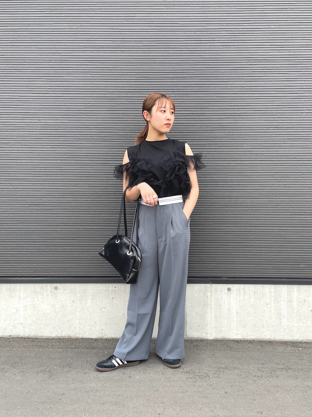 チュールブラックコーデ🐈⬛🎱🖤 ふわふわのチュールもブラックになると引き締まってみえます! カバーポイント🦛 チュールは肩にかけても、下ろしてもOK 気になる部分や骨格に合わせて変えてみてください! Instagram: maomao_pal