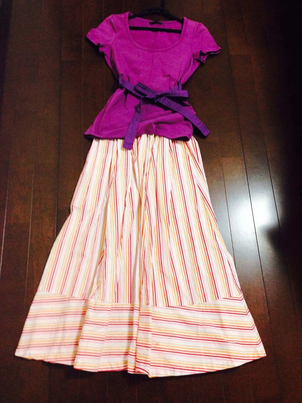 PJのロンスカANDセレクトブティックで購入したイタリア製のTシャツ♡ リボンで腰を絞れるようになってるので STYLEよく見えるのがいいね♪