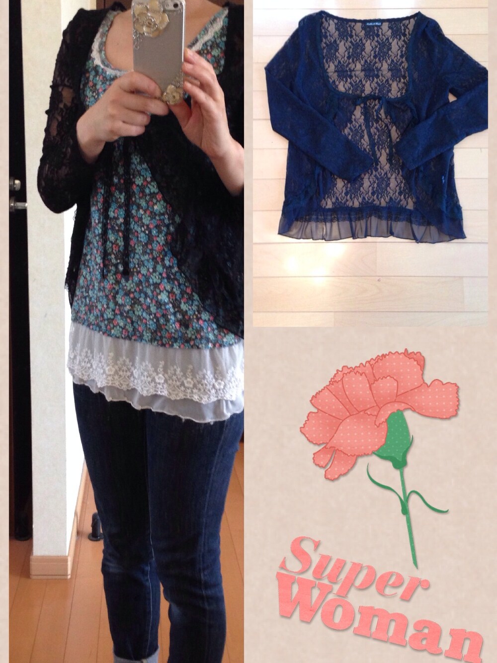 レースカーデガン+レース付きキャミ で甘くなり過ぎないように デニムで合わせたコーデ(^_^)