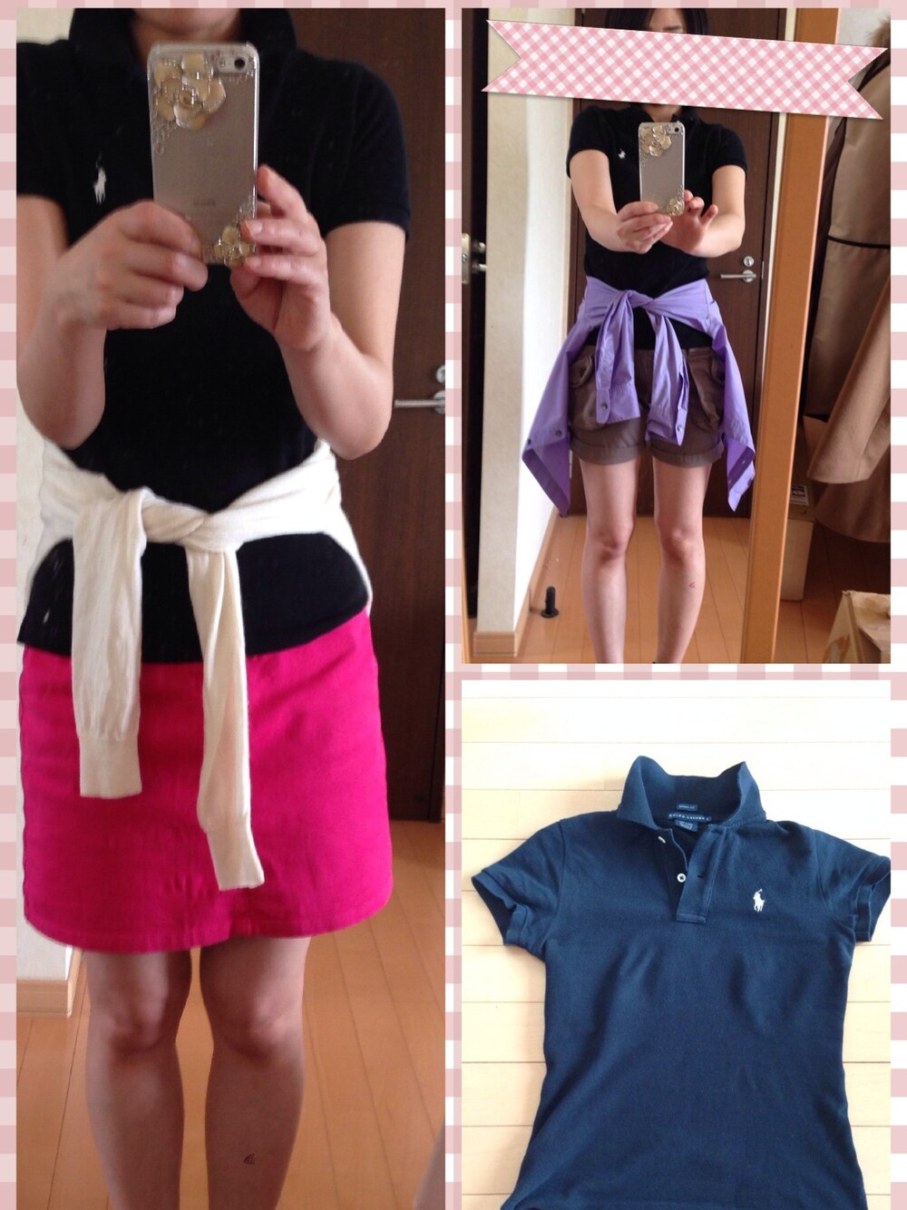 ラルフローレン黒のポロシャツに合わせた スカートとショーパンのコーデ(^_^)