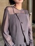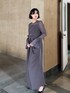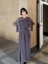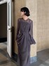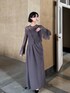 シアー素材のトップスで、光に当たると細かなラメがふわっときらめいてくれるデザイン。 袖にボリュームがあるので、一枚でも華やかに着られます。 身頃部分はシンプルなので甘くなりすぎず、大人っぽい印象にまとまります。 アシンメトリーなフロントデザインがポイントのワンピース。 落ち着いた色味ですが、シアートップスと重ねることで存在感のあるコーデに。 165cmで足首あたりの丈感。歩くたびにゆるやかに揺れるシルエットが上品です。 華やかすぎず、しっかり雰囲気のあるスタイリングに仕上げたい方におすすめです★ 身長:165cm/年齢:20代 普段サイズ:M パーソナルカラー:イエベ秋 骨格:ウェーブ Instagram:@maootlt 着用サイズ: M