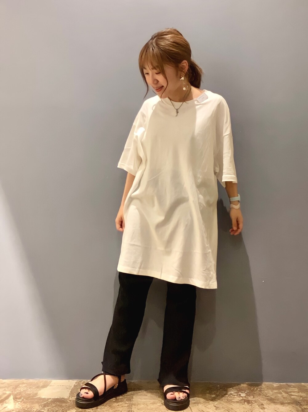 map(AMERICAN HOLIC)のTシャツ/カットソー「バックタックドロップショルダーBIGチュニック *●」を使ったコーディネート