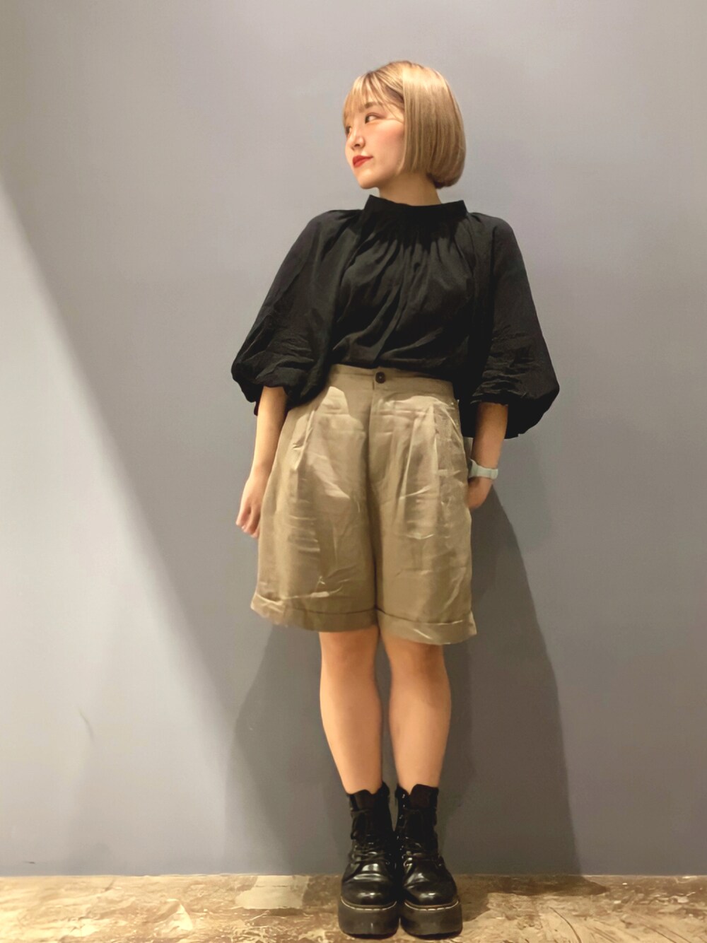 トレンドのハーフパンツもブラウス合わせで綺麗目に🦔