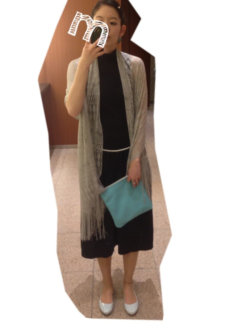 先輩の結婚式二次会の日 ワンピース/おさがり パンプス/UNITED NUDE ストール/不明 クラッチバック/ヒッチハイクマーケット ピアス/WHO'S WHO gallery ヘアピン/ハンドメイド ベルト/ハンドメイド