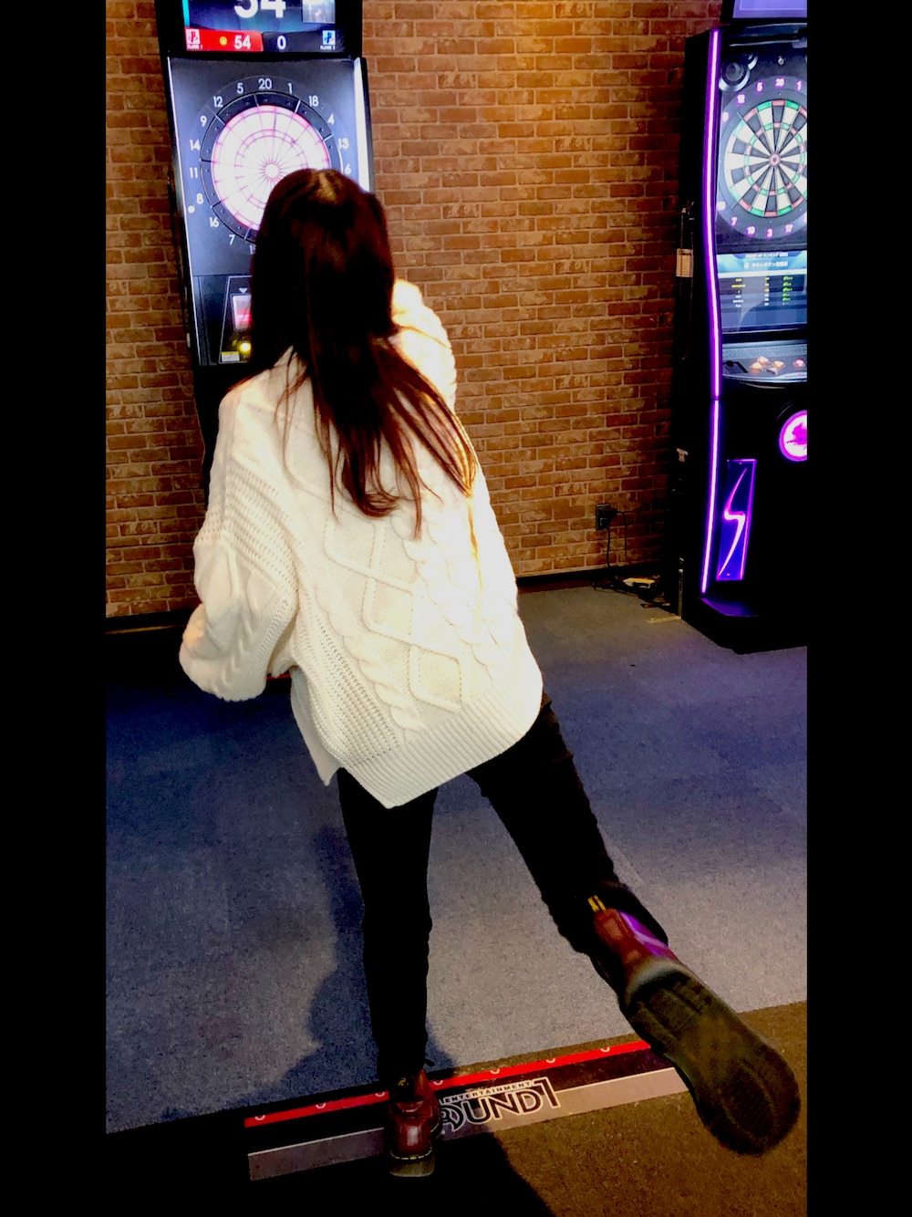 仲良し四人で買い物したあと、夜は先輩とご飯食べてラウワンでダーツ。 ゆるめ着
