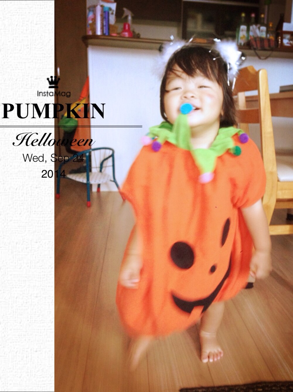 カボチャさん気に入ったみたいで 起きたら持ってくる♥︎♥︎ ちなみにヘタじゃなくて猫耳😻 かわいすぎるーーー♥︎ 親バカすみませんm(_ _)m