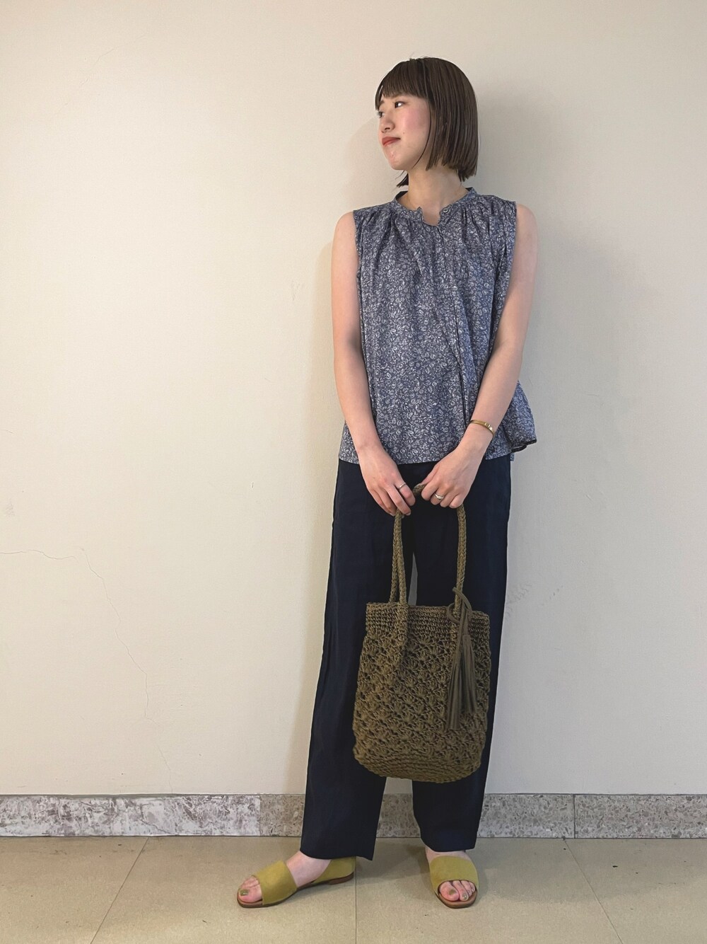 花柄のブラウスがかわいい💐💐 ブルー系のワンカラーコーデ大人っぽい印象になるのでハマっています◎