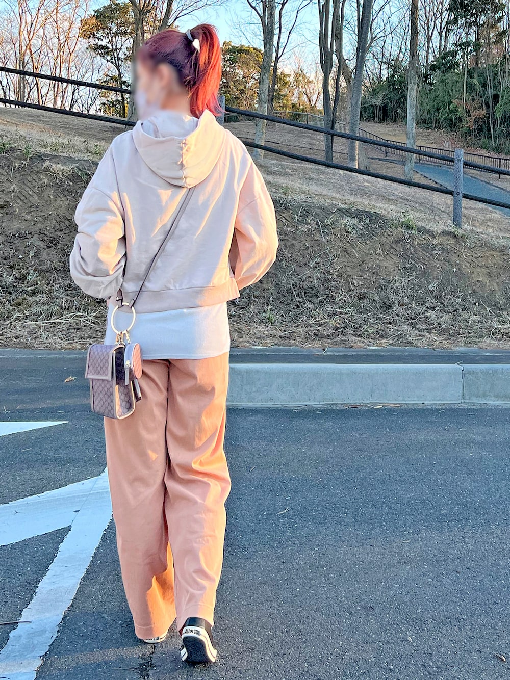 オレンジ⇄ベージュの グラデーションコーデ♡ UNIQLOのワイドパンツ 履きやすくてお気に入り 夕方の撮影で ピンクの髪の色が オレンジっぽく写ったー 奇跡のグラデーションw そして… 今更ながら3連マルチショルダーの 使い勝手が良すぎる事を知った♡