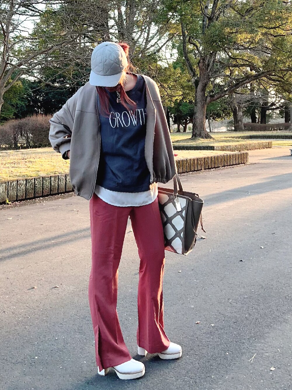 *Hc*のスラックス「フレアラインサイドスリットパンツ *●」を使ったコーディネート