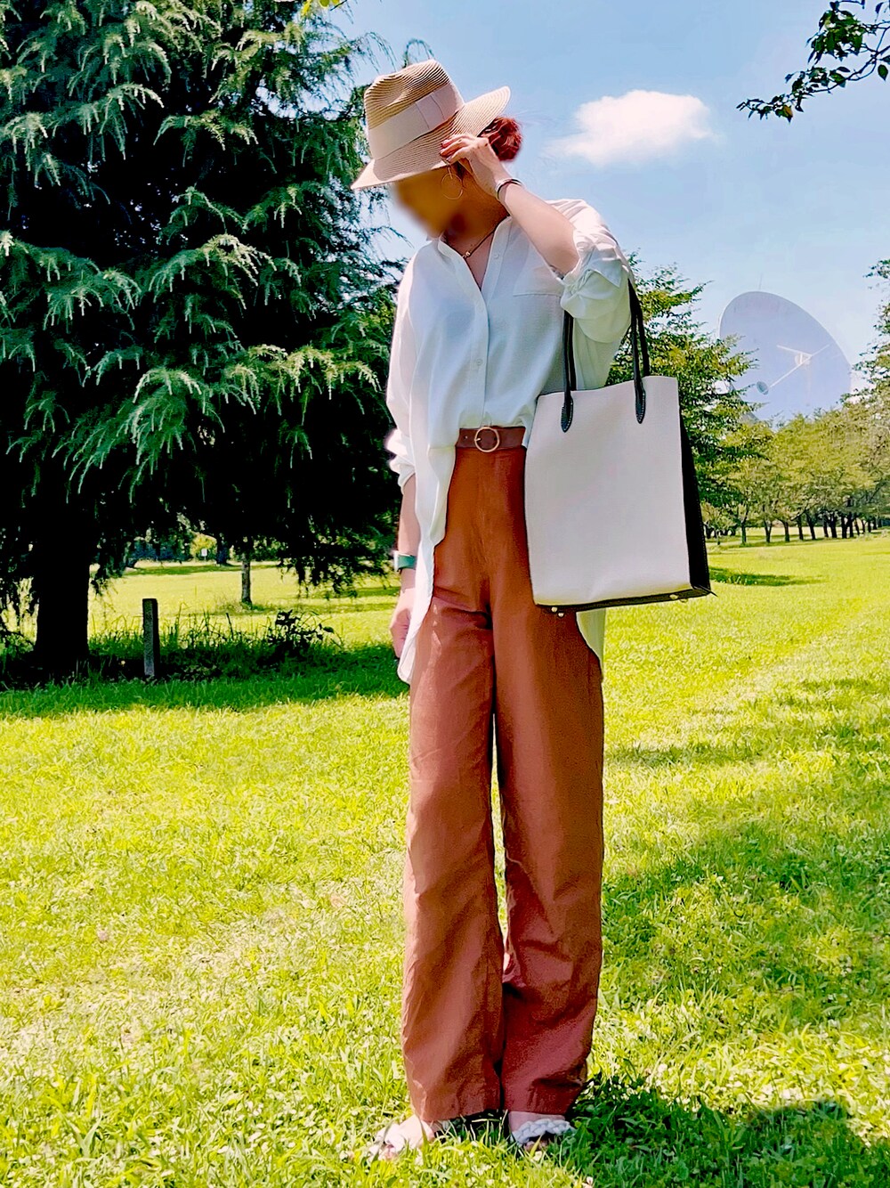 本日のお仕事コーデ❤️ しまむら購入の HKworkslondonのトートバッグ👜 キャンバス地のような合皮✨ ガバッと開くところが仕事用には嬉しい😊 そして大好きなカーキ💚 UNIQLOの リネンブレンドのストレートパンツ💛 昨年の購入品だけど これめっちゃ楽チンで気に入ってます✨ ブラウンのパンツに 白シャツのタックイン スエード調のベルトとチョーカー😊 まだまだ夏なのに 8月に入った途端に気分は秋🍁ですか? って言うぐらい秋カラー😁 しまむら購入のサンダル👡 めっちゃツボってるのに草に隠れて全く見えてないって言う🤣🤣🤣