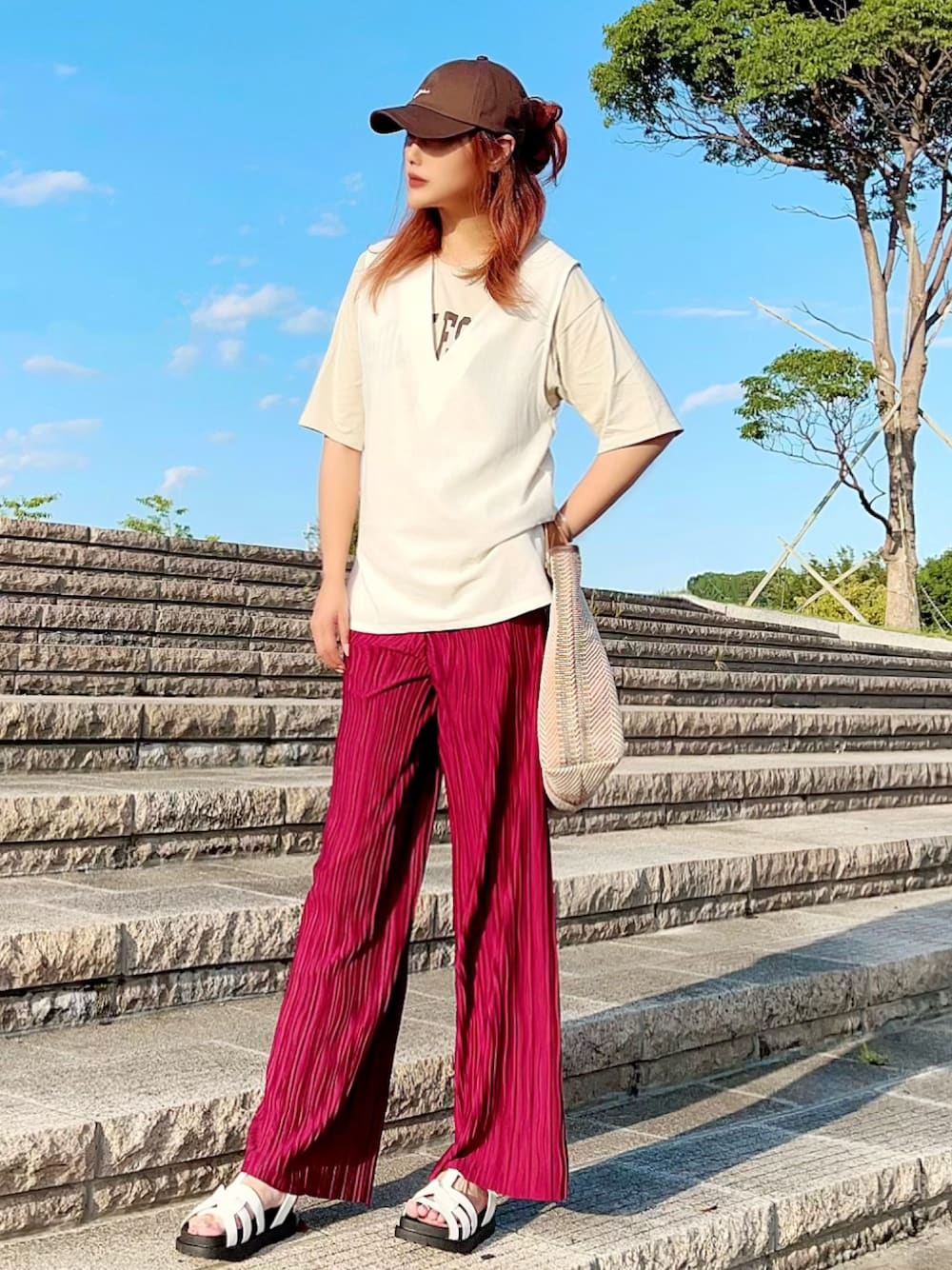 今日の楽ちんコーデ❤️✨😁 Helmさんの ベージュにブラウンロゴの五分袖Tシャツに一目惚れ😍 微妙に見えるロゴカラーに合わせて 先日しまむらで購入した ブラウンの300円キャップを合わせてみる😁 Vネックベストが白でさ… 画像になると Tシャツカラーのベージュと だいぶかぶってくる件🙄 しまむらのRELACHEのプリーツパンツ❤️ ワインレッド大好きです😍 腰履きしてでも丈は長めに履きたい件🤣 先日アベイルで購入した SUREVEのサンダル♡ グルカサンダルは嫌いじゃないんだけど オープントゥタイプじゃないと嫌で😅 こーなった🤣 GUのバッグ♡ 多分2年ぐらい前のだと思うわ😆 でも大容量でガバッと開くから使えるバッグ✨ 来年も使えるよね?きっと🤣🤣🤣