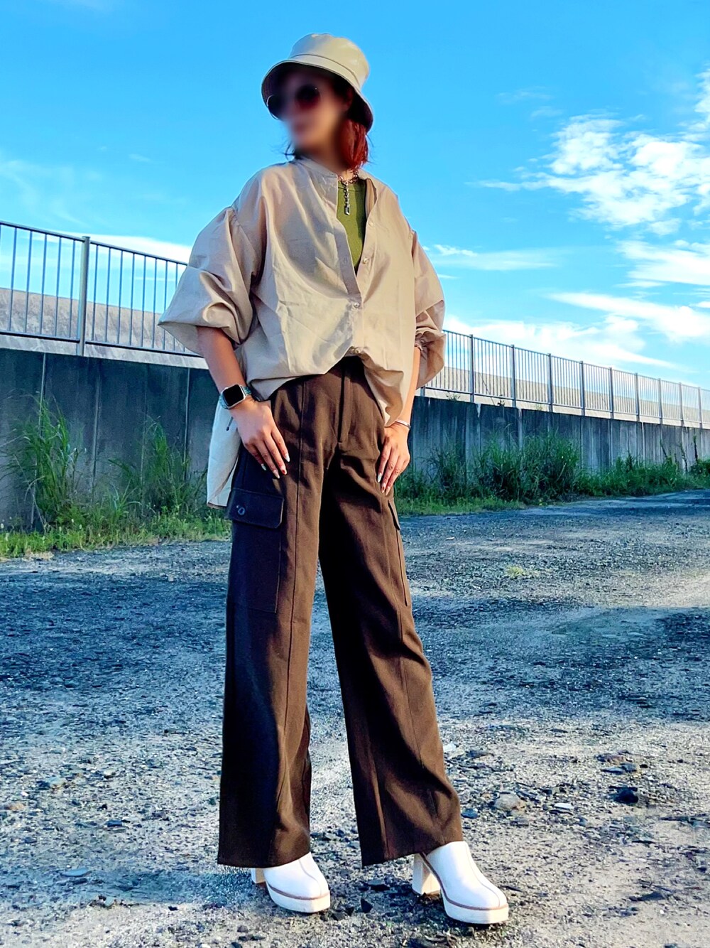 まだまだ暑いーー🥵 ほぼ毎日シアーシャツ🤣 真夏よりちょっと厚手のシアーシャツになったぐらい🤣 ベージュ→ブラウンの プチプラグラデーションコーデ♡ シアーシャツだけど夏秋ミックスで バケハは合皮にしたよ😊 ブラウン好きだけど 着用頻度は少なめのカラー 骨格とかパーソナルカラーとか 凄く便利な診断方法もあるけど 自分が着たいモノを着れないのは嫌なので… アタシは気にしないで着ちゃってる♡ 『着たい時に着たいモノを着る』 それがアタシの元気の秘訣😆✨ 着たいモノ着てる時の方が テンションがあがる いい顔になる 仕事も上手くいく💪 自分らしさを大切に生きたい💕