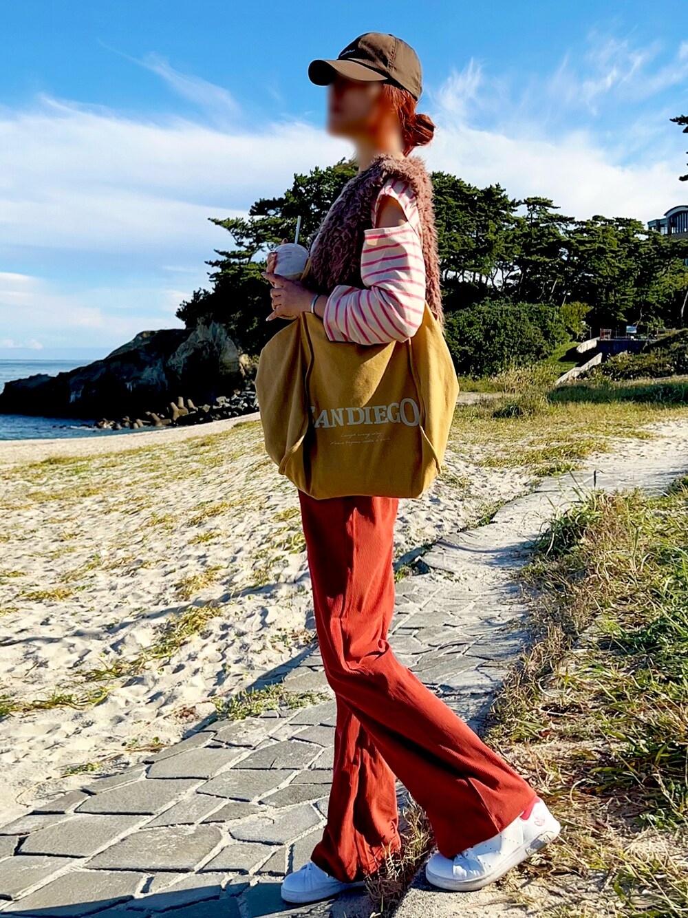 今日はお休みの予定だったのですが 急遽仕事が入り午前中だけお仕事💪 帰り道時間があったので 久しぶりの海岸へ🌊 懐かしい場所😊 この海でみんなで一夜を過ごした事もあるぐらい 思い出が沢山詰まった場所😄 久しぶり過ぎて途中迷子🤣🤣🤣 意外とたいして変わってない✨ もっと綺麗だったかな🙄 カットアウトのロンT 今年の春にSALE品で500円で買いました😛 昼間はロンT+ベストは暑い🥵 カットアウトなだけ涼しいかな的な♡ たいして変わらんよねw テラコッタカラーのコーデュロイパンツ♡ うちの会社の試作品だったモノ✨ 色味がとってもお気に入り😍