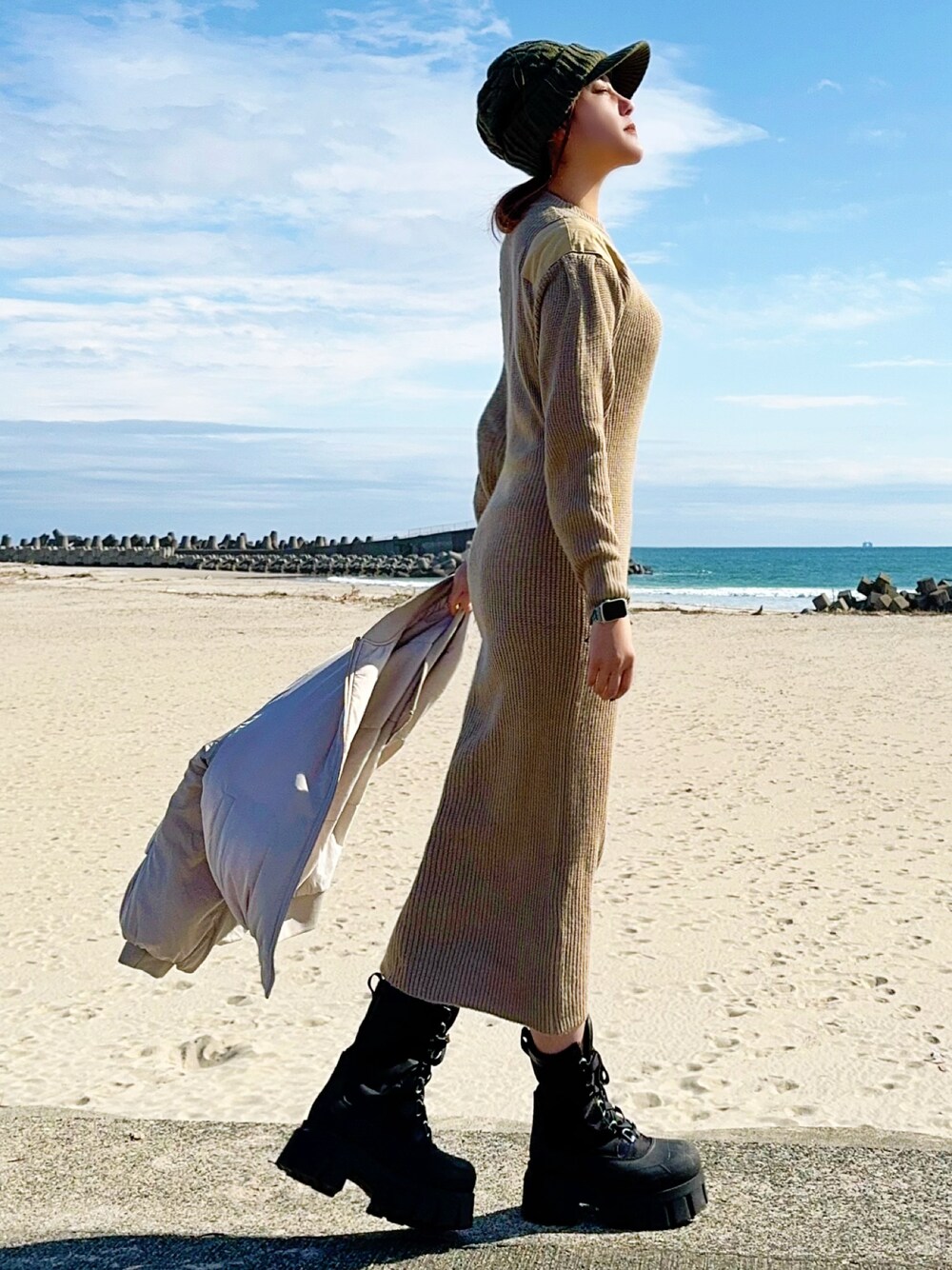 *Hc*のワンピース「armonia・ミリタリーニットワンピース*」を使ったコーディネート
