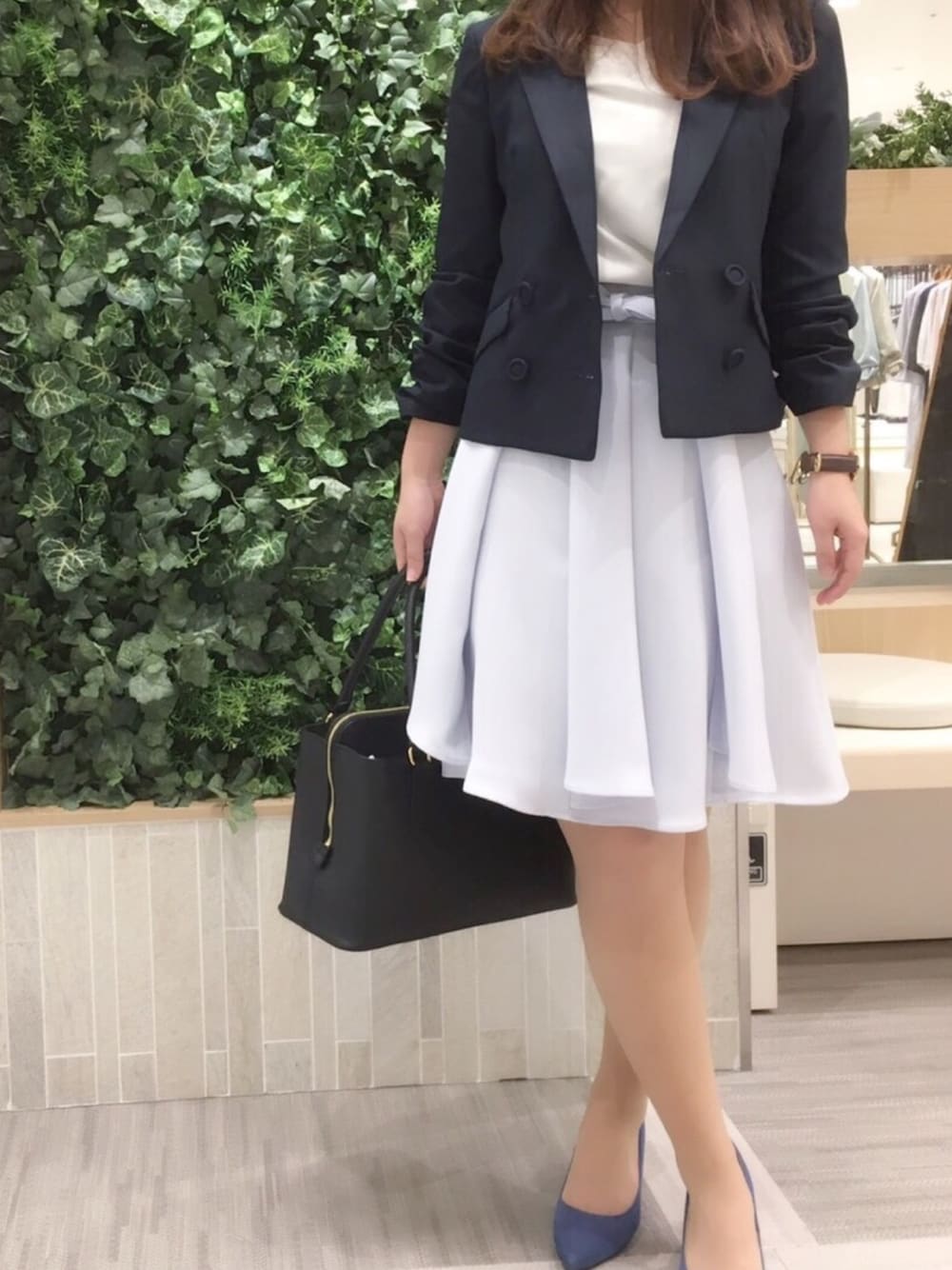いつも、いいね・フォロー・SAVE 有難うございます😊✨ 本日はお仕事スタイルです! ネイビーのジャケットにサックスのスカートで 爽やかな印象を与えます♡♡