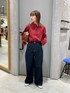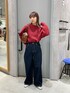 Instagram ▶︎ @maplesiroop_f 秋冬おすすめの赤ニット×ネイビーデニムのコーデ。 ニットはラグランスリーブなので、他とは違うゆるっとしたシルエットがポイントです。