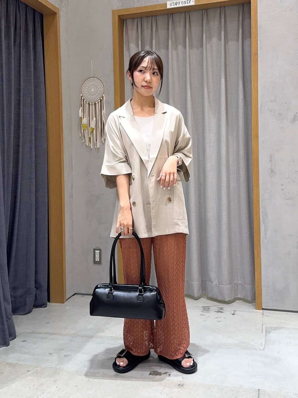 ▶︎リネン混ゆったり半袖シャツジャケット サラッとした手触りが夏にぴったりなリネン混ジャケット。 身幅はゆったりで、オーバーサイズのTシャツも嵩張らずに着ていただけます◎ ▶︎レース編みニットフレアパンツ 着用サイズ:S 程よいフレアシルエットが、脚のラインを隠しながらスタイルアップ見せしてくれるニットパンツ。 薄手のレース編み素材で夏も涼しく着ていただけます!