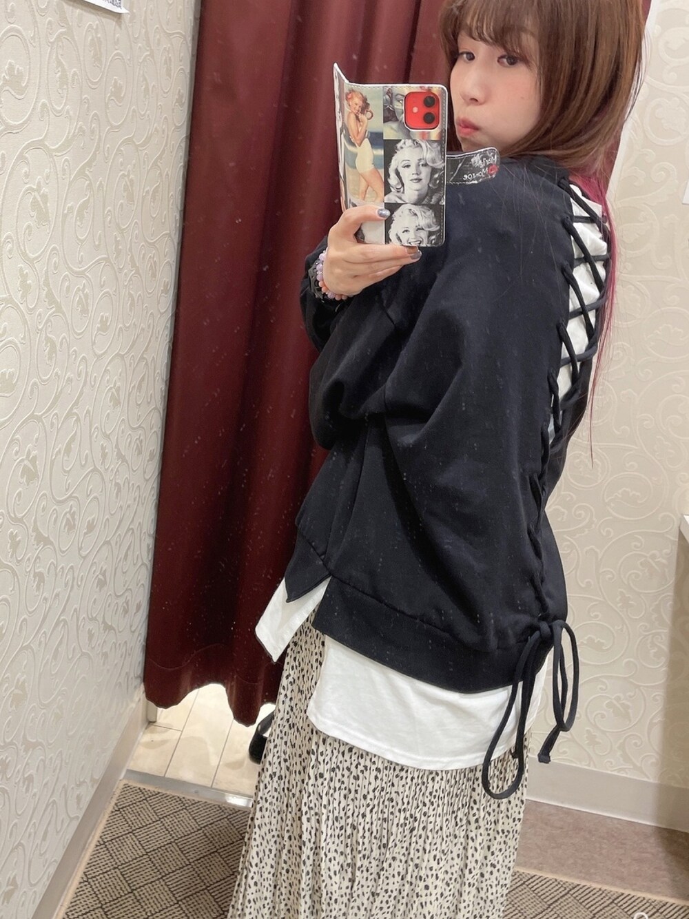 今日はヒョウ柄プリーツスカートのコーデの紹介です🤗 . . Tシャツ、ニット、スウェットやパーカーなど、、何でも合わせられちゃうスカートは1枚持ってるだけでヘビロテ間違いなし☝️✨ . . 今回はレースアップのバックスタイルがかわいい トップスを合わせてみました★ . . レイヤード風に見せて1枚でさらっと着れちゃうのが嬉しい😚 . . しかし、バックスタイルを撮るのってホント難しいwww
