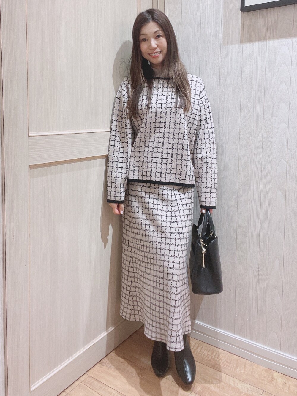 セットアップで着れるニットとスカートは大活躍間違いなし!! スカートをパンツスタイルに変えてもいいし、トップスのニットは使い回し抜群!!