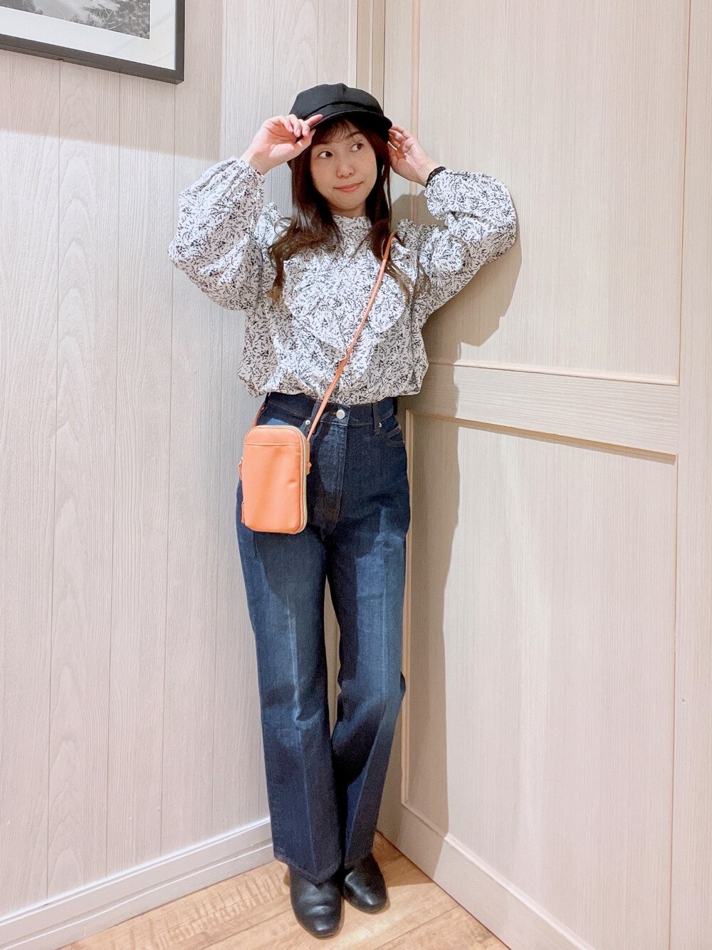 フリルブラウスをデニムで着こなし、キレイめカジュアルスタイルに。 いつものデニムもブラウスと合わせればオシャレさがUp!! セミフレアのデニムなので、足長効果もあり スタイルアップも間違いなし!! ※ブーツは私物です