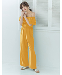 fun.kのつなぎ/オールインワン「[ロマンティックなボリュームフリル]フリルオフショルダーオールインワンボトムス/パンツ/オールインワン[リエディ]」を使ったコーディネート