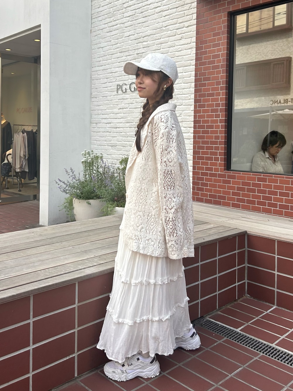レースとティアードワンピで全体的に甘め。 なのでFILAのスニーカーでカジュアルダウンしたらこれが可愛かった! カラーは白で統一して存在感も抜群🙆♀️ またこのコーデしたい! Instagram @ma_po__